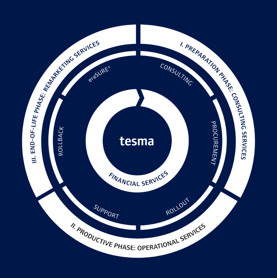 Met ons sale and leaseback-programma geniet u van onze end-of-lifecycle-diensten. Deze omvatten de veilige inzameling en afvoer van uw huidige assets, alsook de gecertificeerde verwijdering van uw data via eraSURE®, om ervoor te zorgen dat uw gevoelige bedrijfsgegevens veilig zijn. Dit omvat ook het vernieuwen van uw oude assets om de totale verkoopwaarde te verhogen, remarketing van uw assets en recycling van verouderde apparatuur in overeenstemming met de WEEE-richtlijnen. Wij kunnen ook de uitrol van alle nieuwe assets verzorgen, zodat u een soepele overgang kunt maken tussen rollback en rollout.